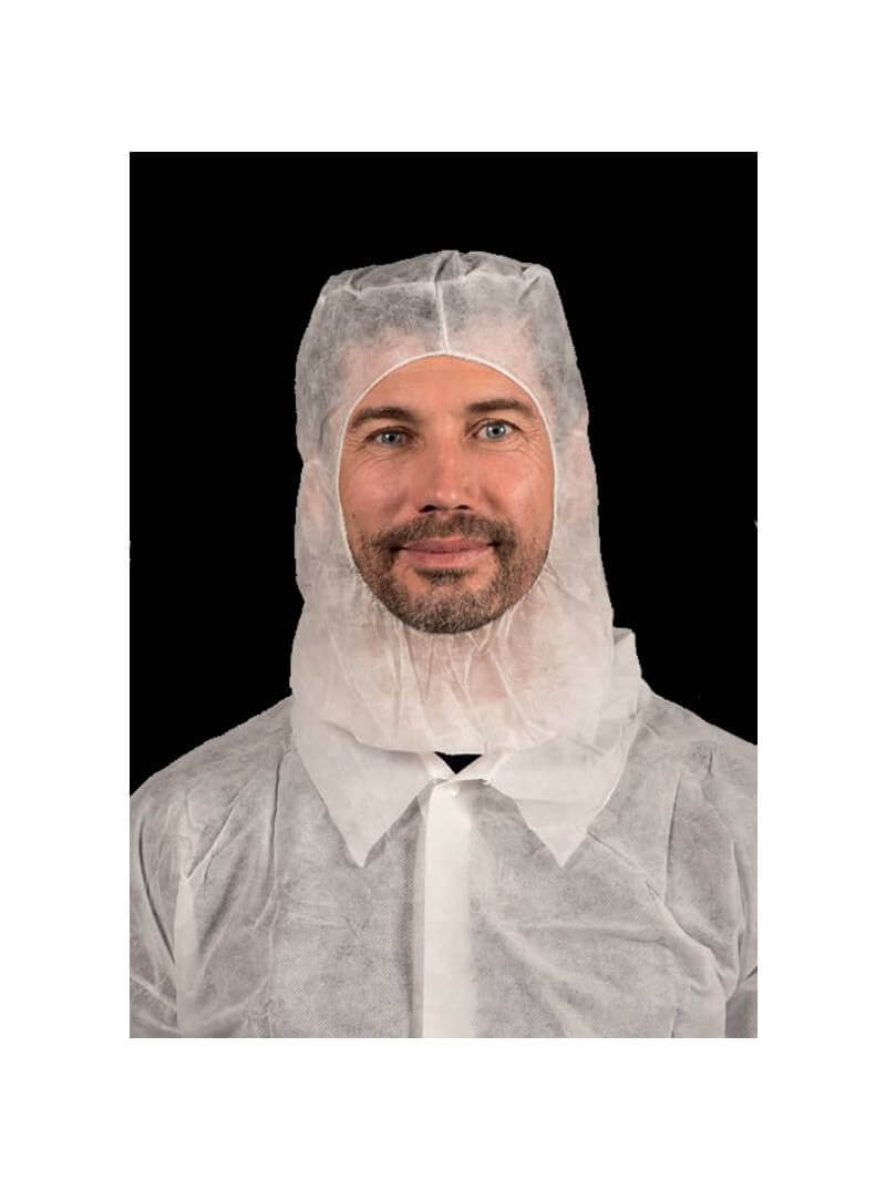 La cagoule, en polypropylène, blanche intégrale est une protection "tout en un" : remplace une charlotte et un protège barbe. Le contour du visage est élastiqué pour un meilleur maintien. En taille unique, elle va s'adapter à toutes les morphologies grâce à son élastique de serrage à l'arrière.