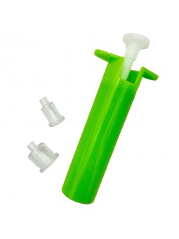 La Pompe à Venin est fabriquée en plastique résistant, garantissant la durabilité et l'hygiène. Les sous-parties du produit comprennent deux embouts circulaires (diamètre 15mm et 8mm) qui permettent de s'adapter à différentes tailles de piqûres.