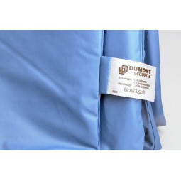 Précautions d'emploi : Lavage à 90°C ou par épongeage avec un désinfectant hospitalier pour surface haute. Séchage à 60°C à régime lent. Ne pas repasser, ni chlorer, et ne pas stériliser en autoclave.